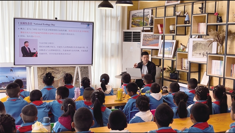 現(xiàn)場,拉魯濕地“生態(tài)科普小教室”工作人員為學(xué)生們播放紀(jì)錄片《拉魯濕地生命奇遇》,讓學(xué)生們聆聽拉魯濕地的故事、感受拉魯濕地不一樣的生命奧妙。該紀(jì)錄片主要展現(xiàn)拉魯濕地國家級自然保護區(qū)四季美景、豐富的生物多樣性以及濕地近年來的保護成果等。