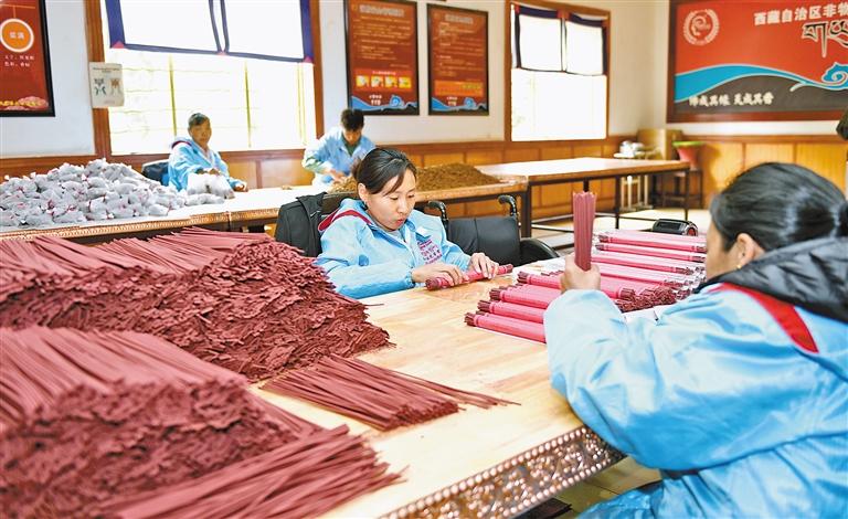2008年6月,藏香制作技藝被列入國家級(jí)非物質(zhì)文化遺產(chǎn)名錄。經(jīng)過多年發(fā)展,藏香已成為西藏自治區(qū)極具發(fā)展?jié)摿Φ奶厣a(chǎn)業(yè)之一,越來越多的藏香加工廠吸納當(dāng)?shù)厝罕娋蜆I(yè),帶動(dòng)群眾增收致富。