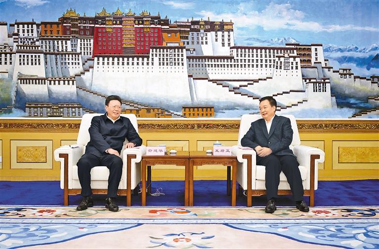29日上午,自治區(qū)黨委書記王君正在拉薩與海關(guān)總署署長(zhǎng)、黨委書記俞建華一行座談。