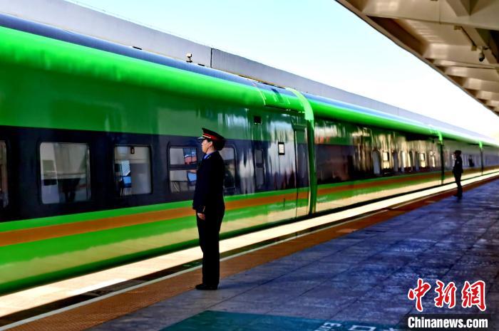 圖為暑運期間從日喀則站開往拉薩站的復(fù)興號動車駛離車站。斗山得 攝