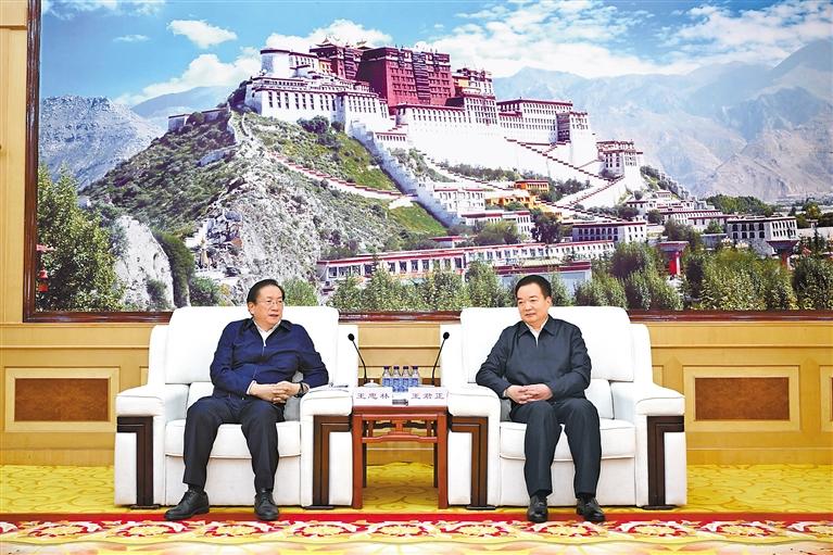 王君正代表自治區(qū)黨委、政府對湖北省黨政代表團來藏考察表示歡迎。他說,在深入貫徹落實黨的二十屆三中全會和第四次對口支援西藏工作會議精神之際,湖北省黨政代表團來藏考察、推進援藏工作,充分體現(xiàn)了湖北省委、省政府貫徹落實習近平總書記關于西藏工作的重要指示和新時代黨的治藏方略的自覺性和堅定性、責任感和使命感。湖北作為中部大省,近年來深入貫徹落實習近平總書記關于湖北工作的重要講話、重要指示批示精神和黨中央決策部署,圍繞“五個功能定位”,推動經(jīng)濟社會快速發(fā)展,為中國式現(xiàn)代化建設作出了積極貢獻。西藏工作在黨和國家工作大局中具有十分重要的戰(zhàn)略地位。自治區(qū)黨委不折不扣貫徹落實習近平總書記為西藏明確的“穩(wěn)定、發(fā)展、生態(tài)、強邊”四件大事,推動各項事業(yè)不斷取得新成效,呈現(xiàn)出一派欣欣向榮的良好景象。今年是全國對口支援西藏30周年,30年來湖北省委、省政府始終站在黨和國家戰(zhàn)略全局的高度,認真貫徹落實黨中央關于援藏工作的決策部署,緊扣受援地需求推進各項工作落地落實,為西藏長治久安和高質(zhì)量發(fā)展作出了積極貢獻,西藏各族人民感恩在心。當前,西藏正處于建設社會主義現(xiàn)代化的關鍵時期,希望兩省區(qū)完整準確全面貫徹新時代黨的治藏方略,錨定在國家全局中的戰(zhàn)略地位,勇?lián)姑?、團結奮斗,攜手為強國復興偉業(yè)作出更大貢獻。深化交流合作,加強發(fā)展戰(zhàn)略對接,強化特色優(yōu)勢產(chǎn)業(yè)融合發(fā)展,揚長避短、優(yōu)勢互補,推動兩地人民共同富裕。堅持以鑄牢中華民族共同體意識為主線,進一步推動對口支援工作走深走實,鞏固教育、醫(yī)療等“組團式”援藏成果,激勵更多優(yōu)秀干部人才參與社會主義現(xiàn)代化新西藏建設。