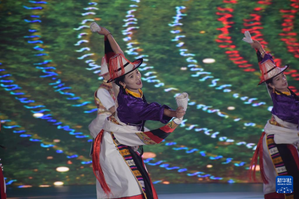 9月15日,西藏自治區(qū)那曲市比如縣娜秀文化藝術(shù)隊(duì)在比賽中。新華社發(fā)(盧丹陽攝)