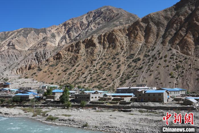 10月2日,從中國西藏普蘭口岸遠(yuǎn)眺一河之隔的尼泊爾胡木拉縣油薩村。中新社記者 崔楠 攝