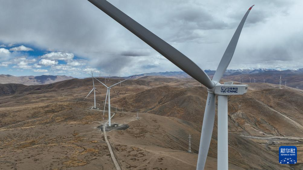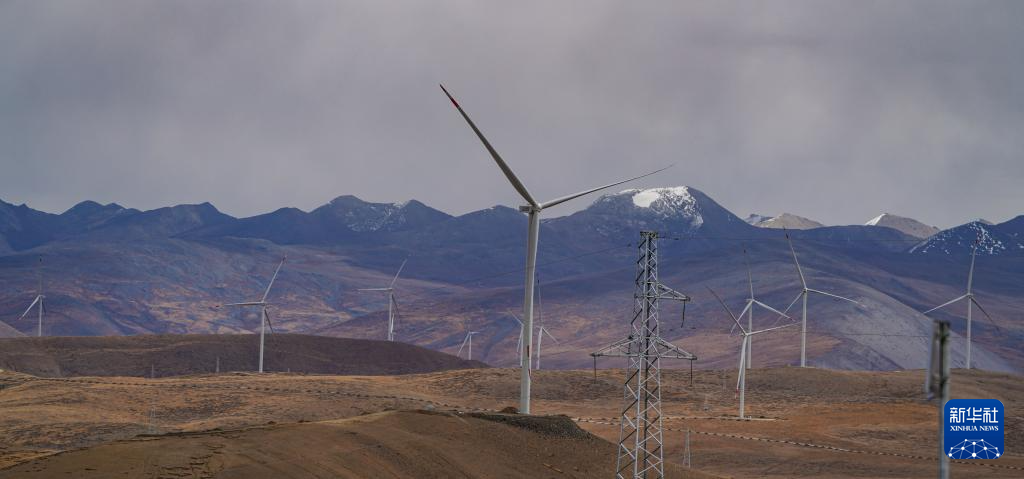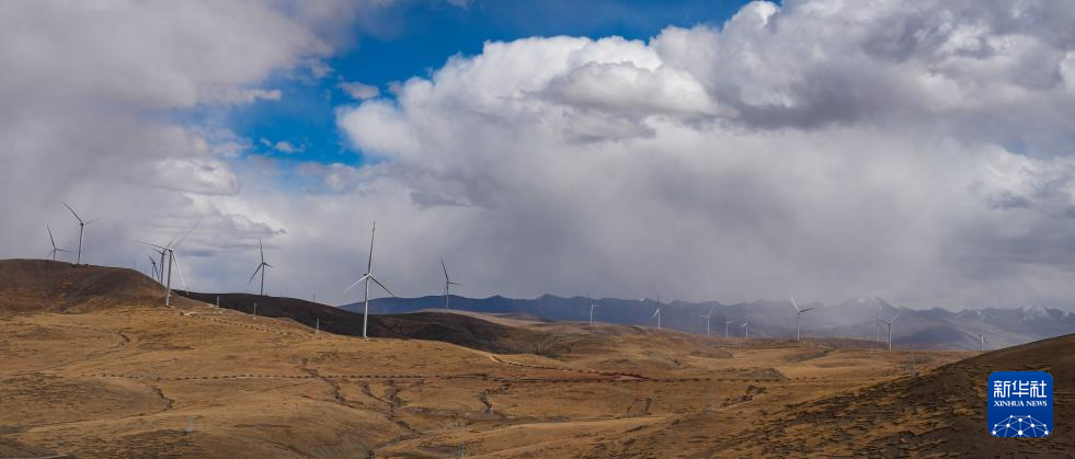 10月17日拍攝的位于西藏日喀則市薩迦縣的風(fēng)力發(fā)電機(jī)組。新華社記者 晉美多吉 攝??