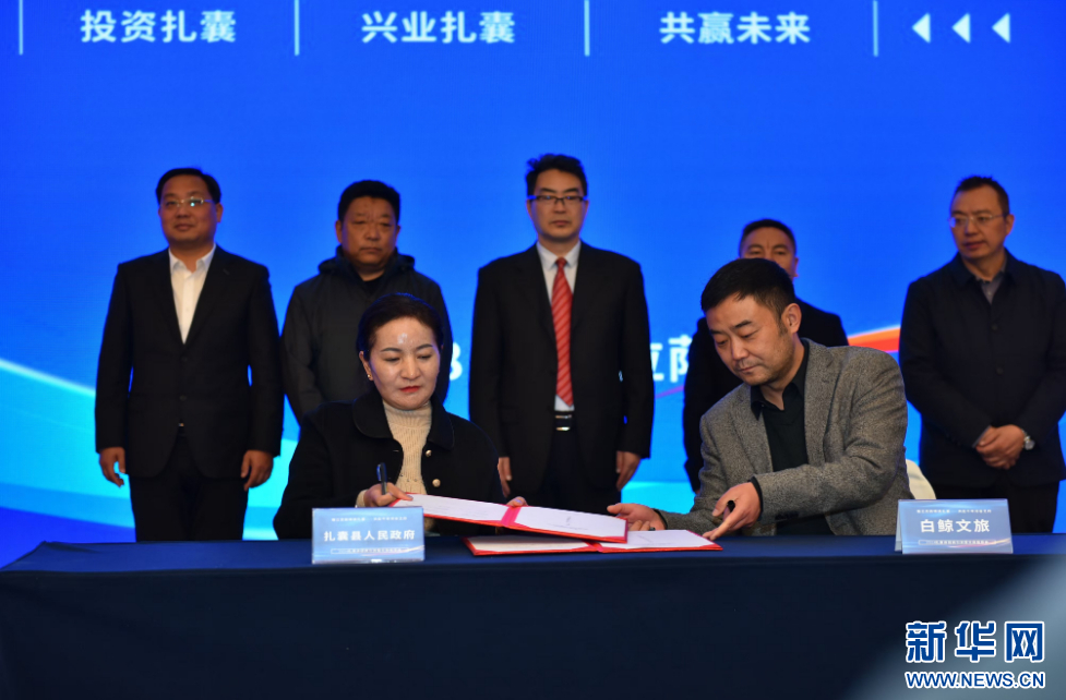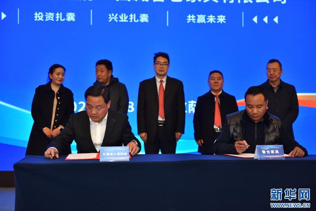 扎囊縣領(lǐng)導(dǎo)干部與意向落地企業(yè)在推介會現(xiàn)場簽約。(受訪對象供圖)