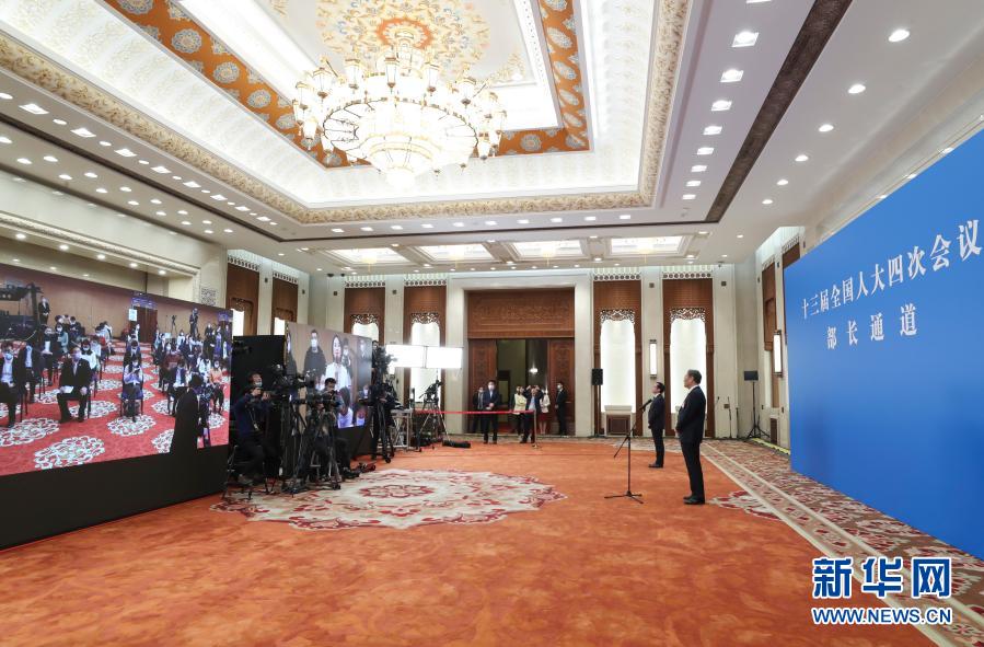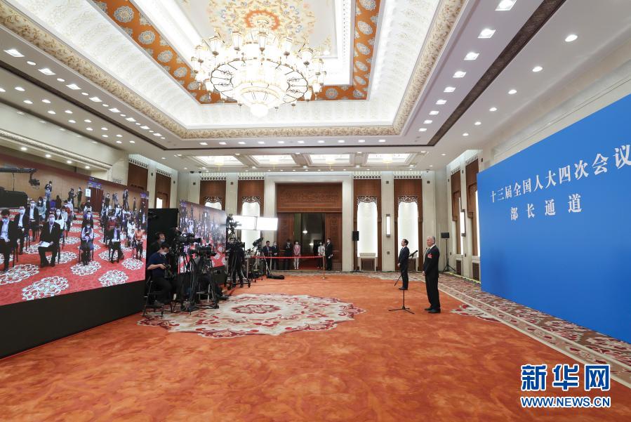 3月8日,第十三屆全國人民代表大會第四次會議舉行第二場“部長通道”采訪活動。這是記者在分會場通過網(wǎng)絡(luò)視頻方式采訪工業(yè)和信息化部部長肖亞慶。