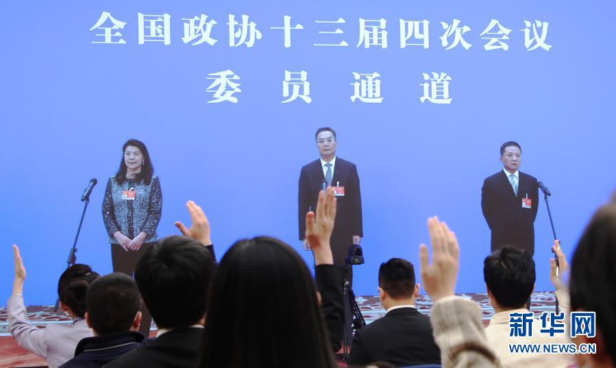 3月10日,全國(guó)政協(xié)十三屆四次會(huì)議第三場(chǎng)“委員通道”采訪(fǎng)活動(dòng)在北京人民大會(huì)堂新聞發(fā)布廳舉行。這是記者在分會(huì)場(chǎng)通過(guò)網(wǎng)絡(luò)視頻方式提問(wèn)。新華社記者 李木子 攝