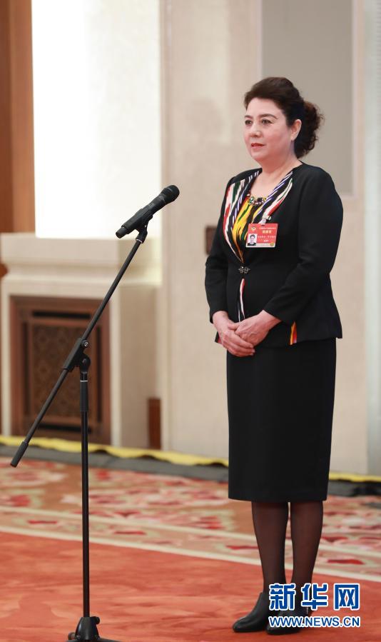3月10日,全國(guó)政協(xié)十三屆四次會(huì)議第三場(chǎng)“委員通道”采訪(fǎng)活動(dòng)在北京人民大會(huì)堂新聞發(fā)布廳舉行。這是全國(guó)政協(xié)委員古麗帕麗·阿不都拉通過(guò)網(wǎng)絡(luò)視頻方式接受媒體采訪(fǎng)。新華社記者 王南 攝
