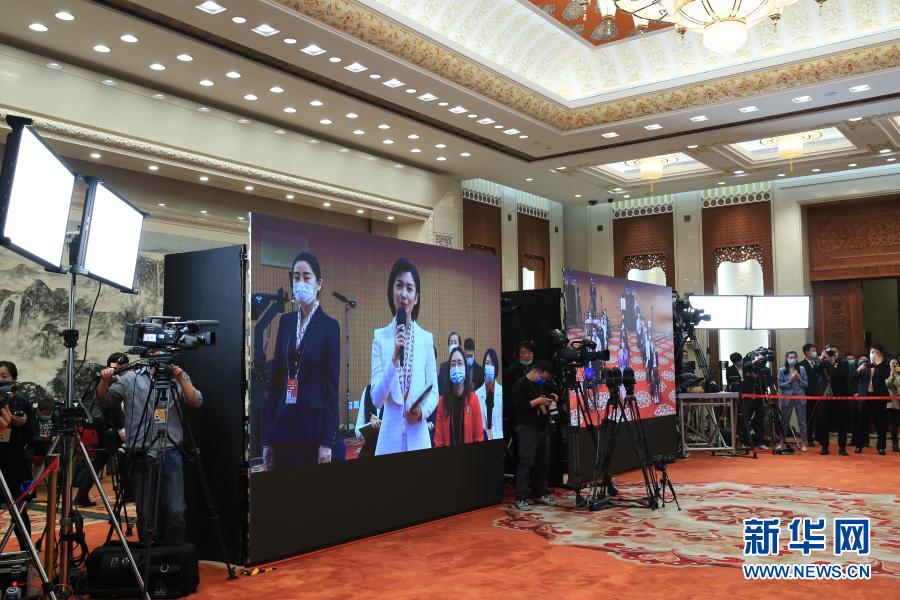 3月10日,全國政協(xié)十三屆四次會議在北京人民大會堂新聞發(fā)布廳舉行第三場“委員通道”采訪活動。這是記者(屏幕中手持話筒者)通過網絡視頻方式提問。新華社記者 王南 攝